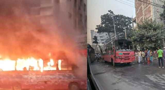 ঢাকায় আবারও বাসে আগুন
