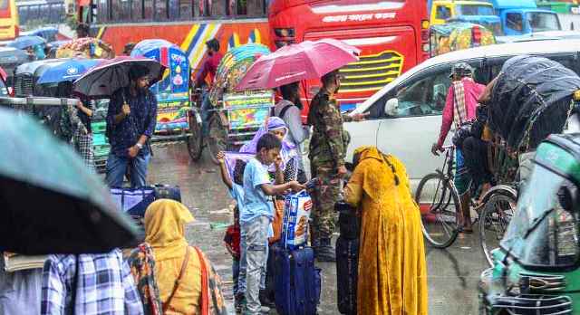 ৪ দিনের ছুটি শুরু, বৃষ্টি মাথায় নিয়ে ঢাকা ছাড়ছে মানুষ