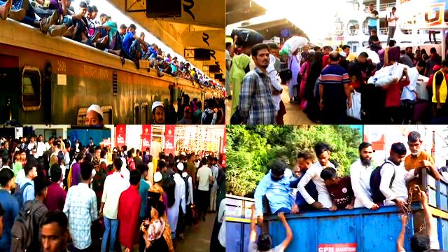 ঈদযাত্রায় বাস-লঞ্চ-ট্রেনে ঘরমুখো মানুষের ঢল